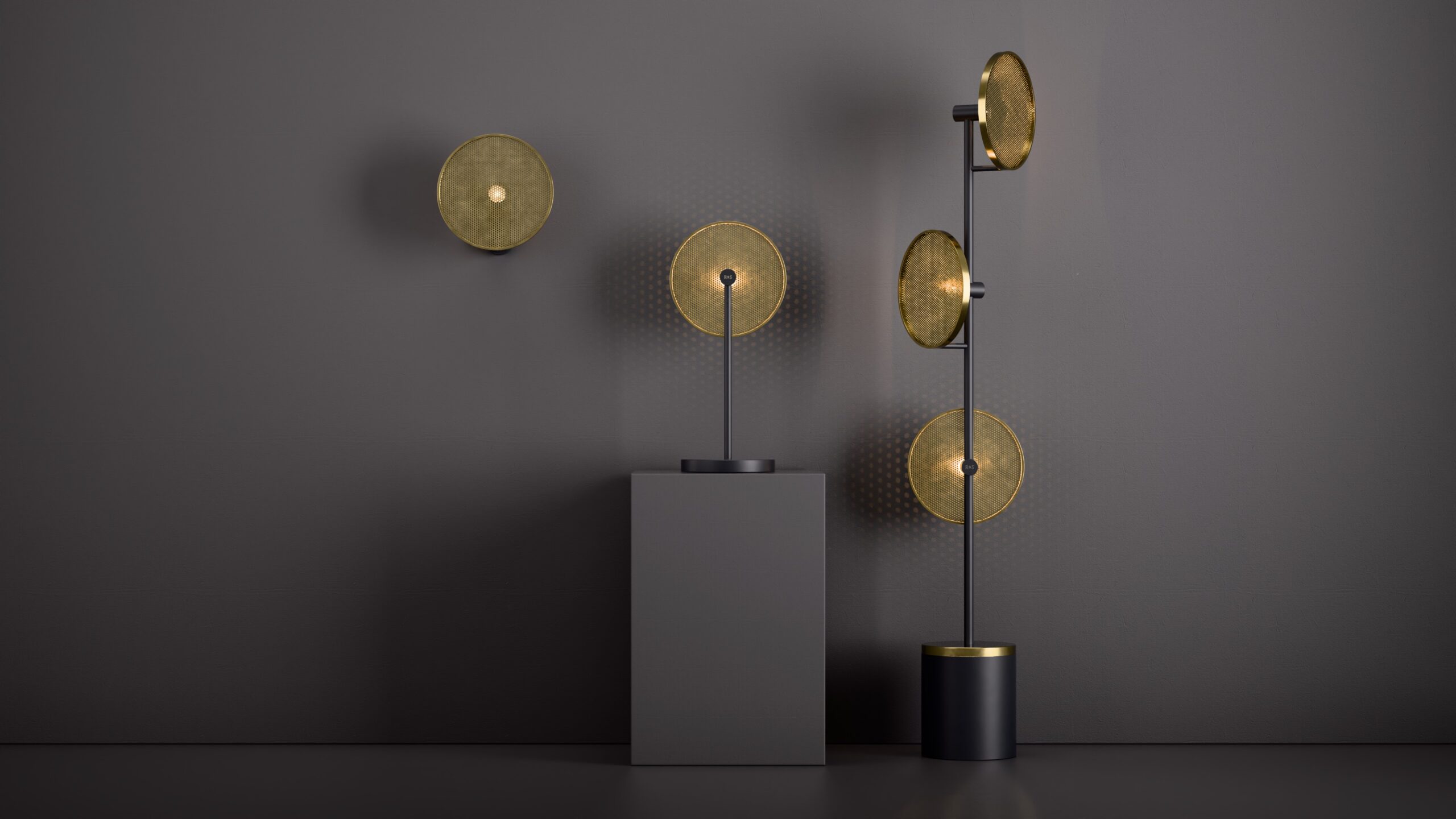 The Swizzle floor lamp features a playful lollipop shape, with a perforated discs that cast captivating patterns of light against the wall.
