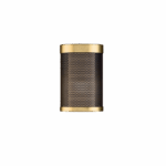 The Chicago corridor wall light is wrapped in a perforated metal, creating an elegant play of light and shadow when illuminated.