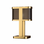The Chicago table lamp is wrapped in a perforated metal, creating an elegant play of light and shadow when illuminated. The base features a USB-C port for effortless device charging.