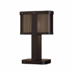 The Chicago table lamp is wrapped in a perforated metal, creating an elegant play of light and shadow when illuminated. The base features a USB-C port for effortless device charging.