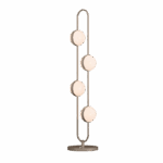 The Daisy floor lamp features a sculptural metal loop, adorned with eight semi-spherical opal glass shades reminiscent of gemstones held in a finely crafted setting.