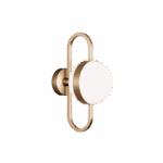 The Daisy wall light features a refined metal loop adorned with two semi-spherical opal glass shades, evocative of delicate gemstones set within a fine ring.