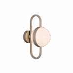 The Daisy wall light features a refined metal loop adorned with two semi-spherical opal glass shades, evocative of delicate gemstones set within a fine ring.
