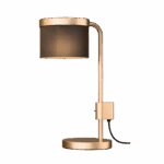 The Hoop desk lamp has a circular frame and thin stem which is accented with a wedge detail housing a sleek, integrated toggle switch. The fitting is finished with a soft linen shade that casts a warm, ambient glow.