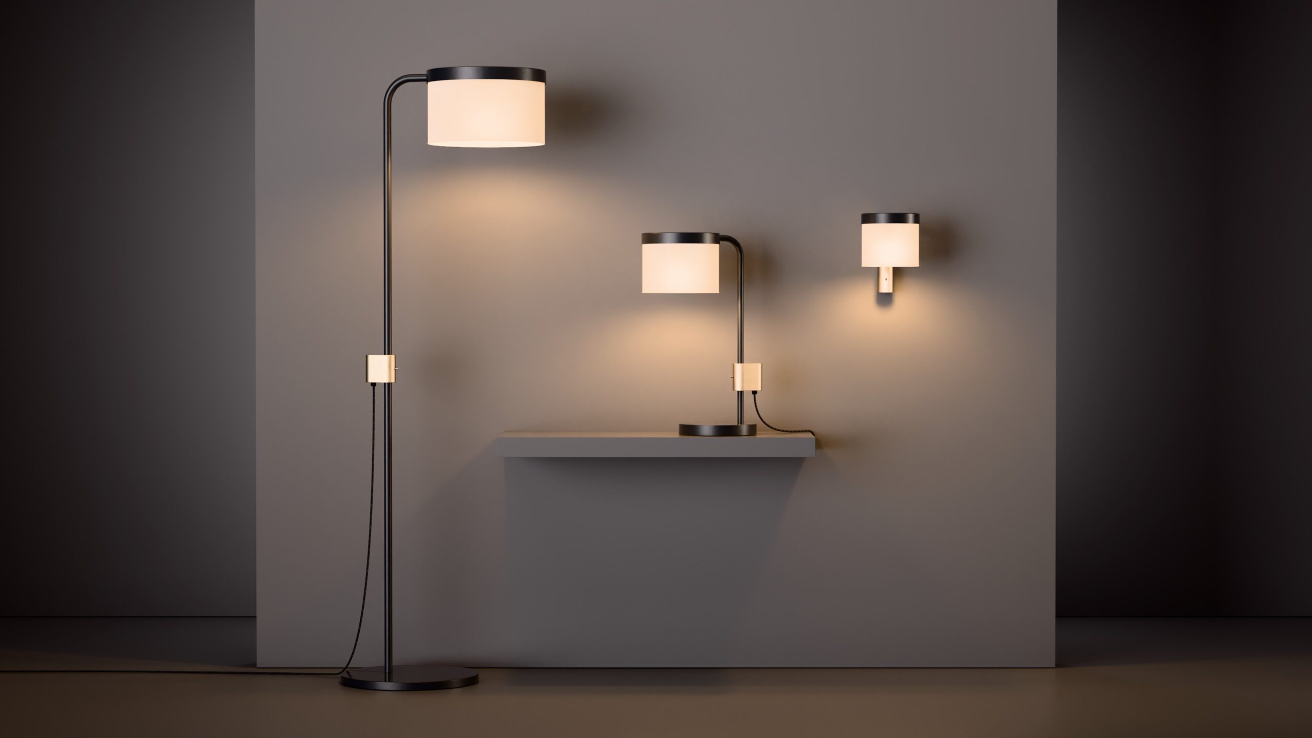 Hoop Wall Light in Super Matt Black + Satin Brass
