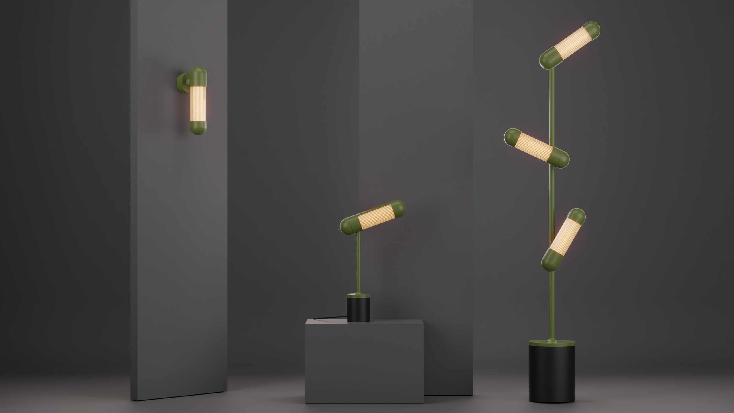 Hudson LED Floor Lamp in Fern Green and Textured Black