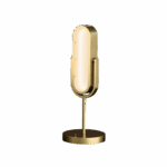 The Jazz desk lamp features a slender stem and an adjustable saddle bracket. A prismatic acrylic diffuser softens the light into a warm, ambient glow, while the adjustable form balances functional lighting with sculptural appeal.