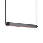 The Jazz linear pendant features slender stems and an adjustable brackets. A prismatic acrylic diffuser softens the light into a warm, ambient glow, while the adjustable form balances functional lighting with sculptural appeal.