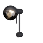The wall light has a domed metal head paired with a thick rippled glass diffuser, long finial detail to adjust the lamp for task lighting, and a modern double wall mount.