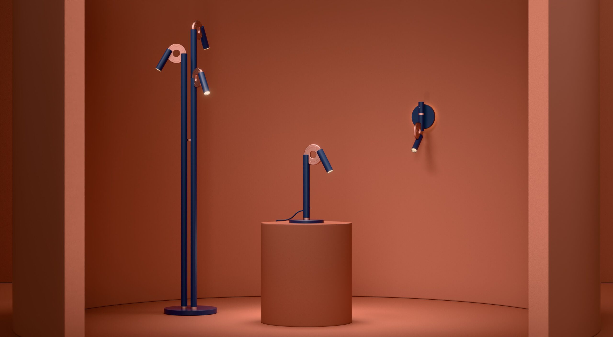 Paris Desk Lamp in Cobalt Blue and Satin Copper