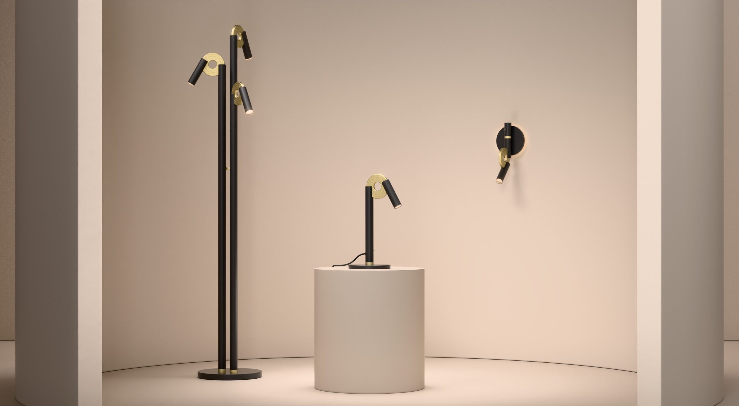 Paris Floor Lamp in Super Matt Black and Satin Brass