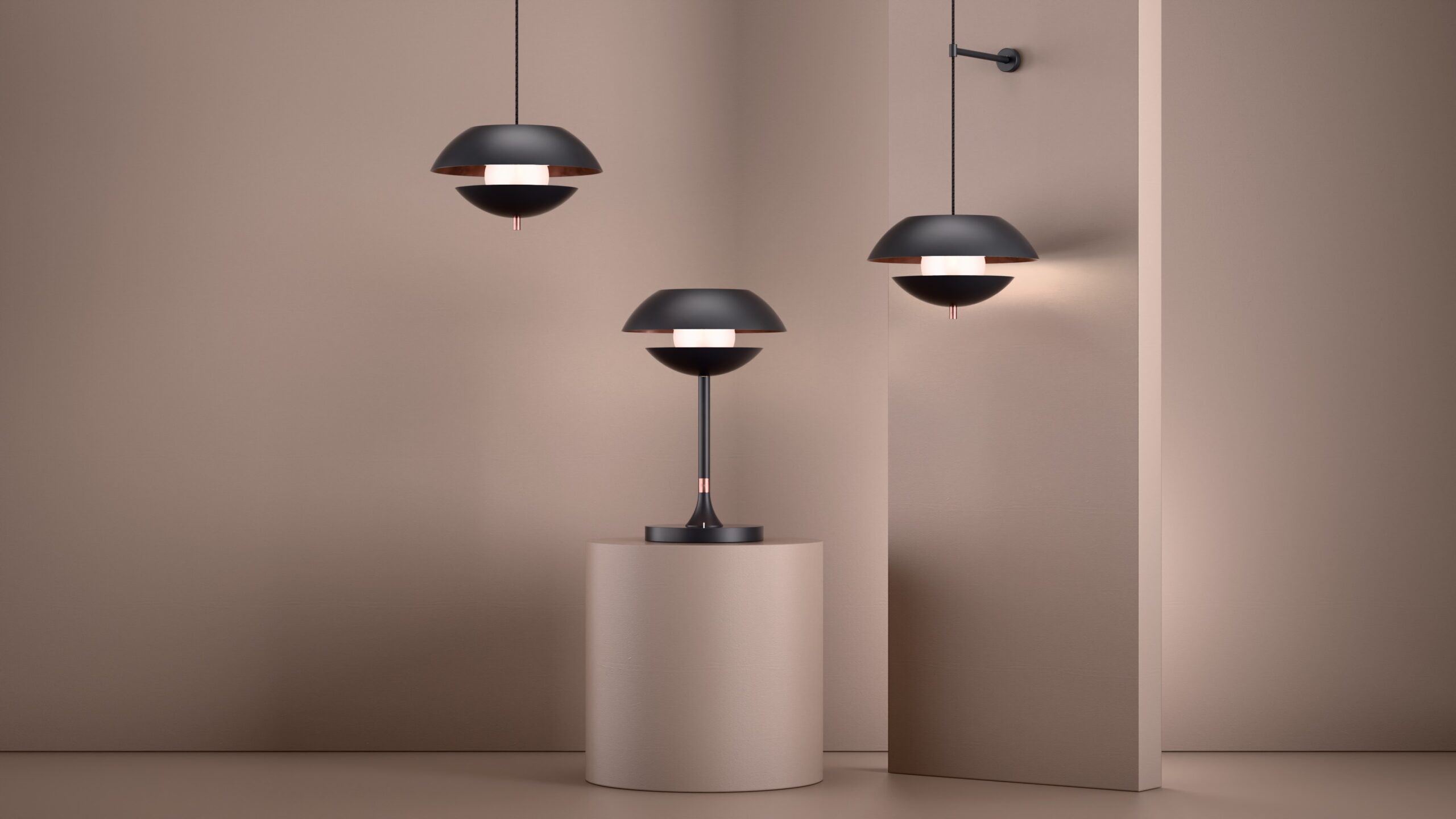 Pearl Bedside Wall Light in Super Matt Black + Satin Copper