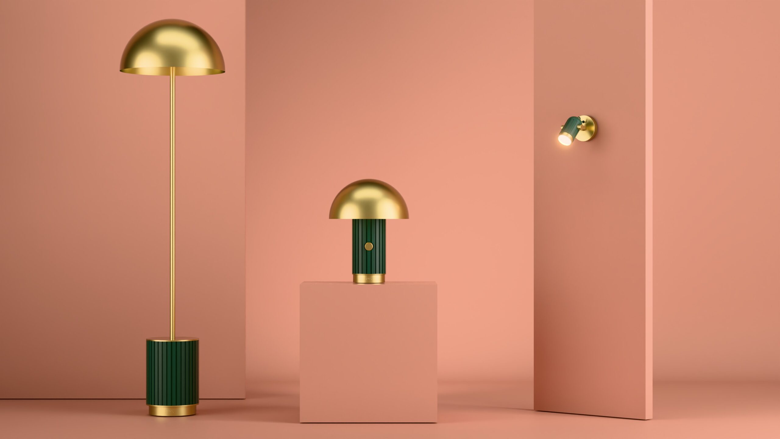 Enquire about the Phi Floor Lamp in Moss Green and Satin Brass