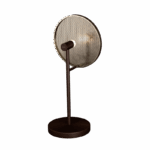The Swizzle table lamp features a playful lollipop shape, with a perforated disc that casts captivating patterns of light against the wall.