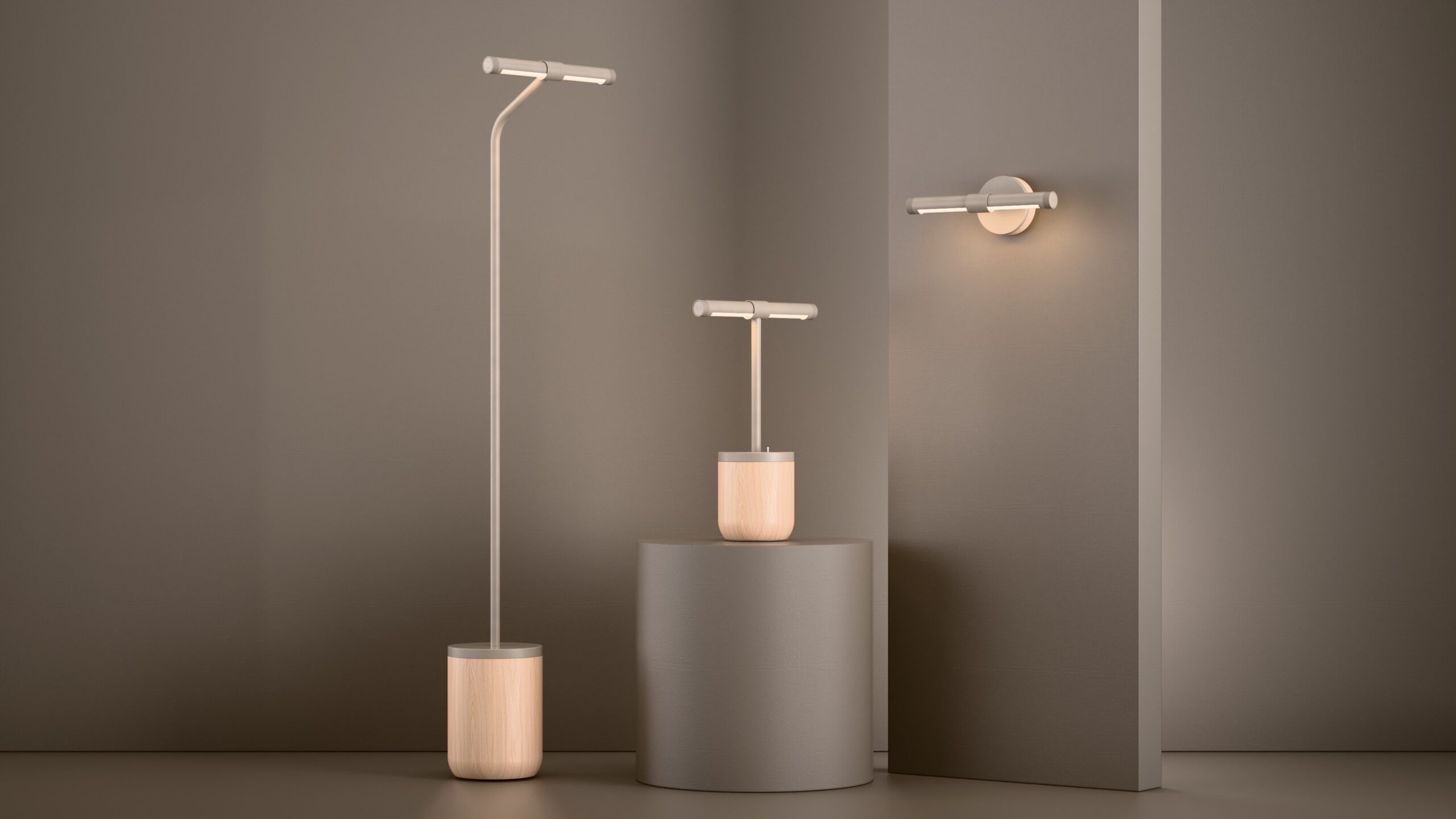 The Twist floor lamp features two rotating light sources, set on a robust base.