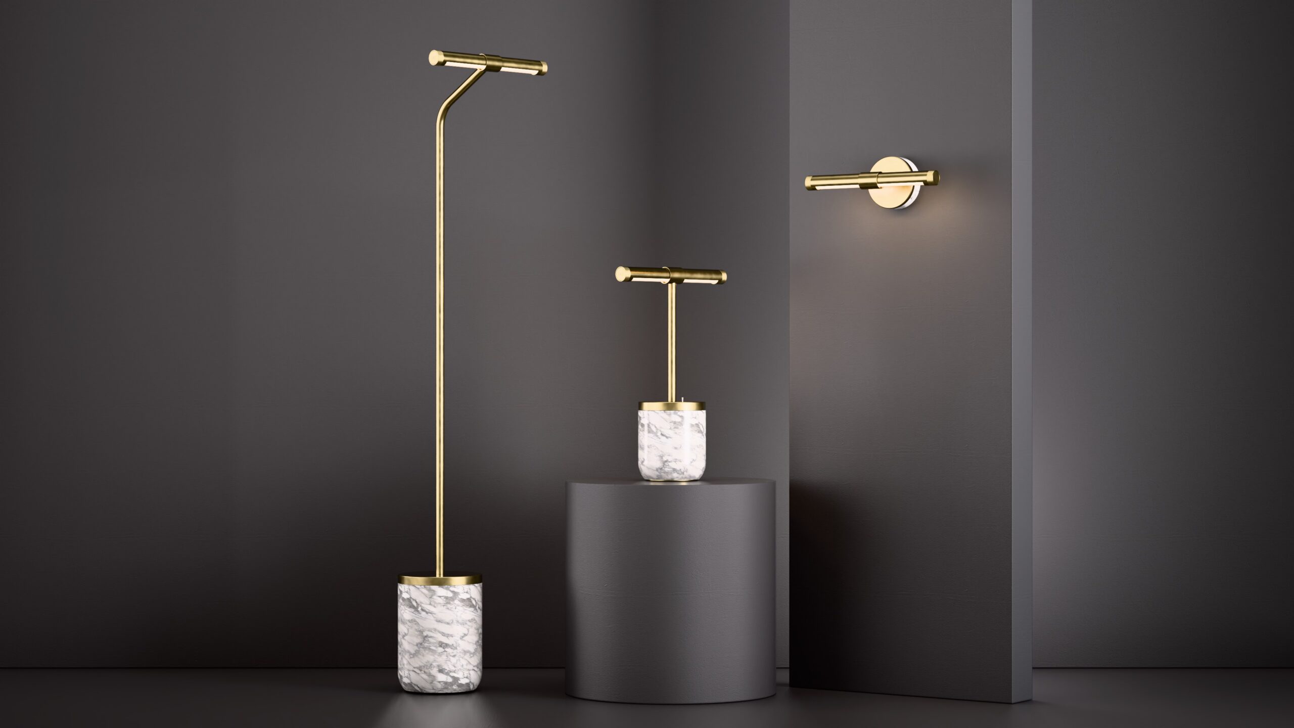 Twist LED Floor Lamp in Satin Brass + White Marble
