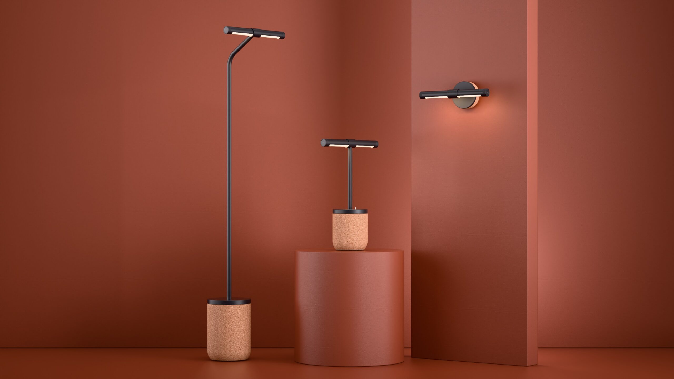 Twist LED Floor Lamp in Super Matt Black + Cork