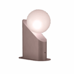 The Vienna table lamp features a slim oblong plate base, a sculpted wedge-shaped body with an integrated sleek toggle switch, and a softly glowing opal glass globe that rests gracefully on top.