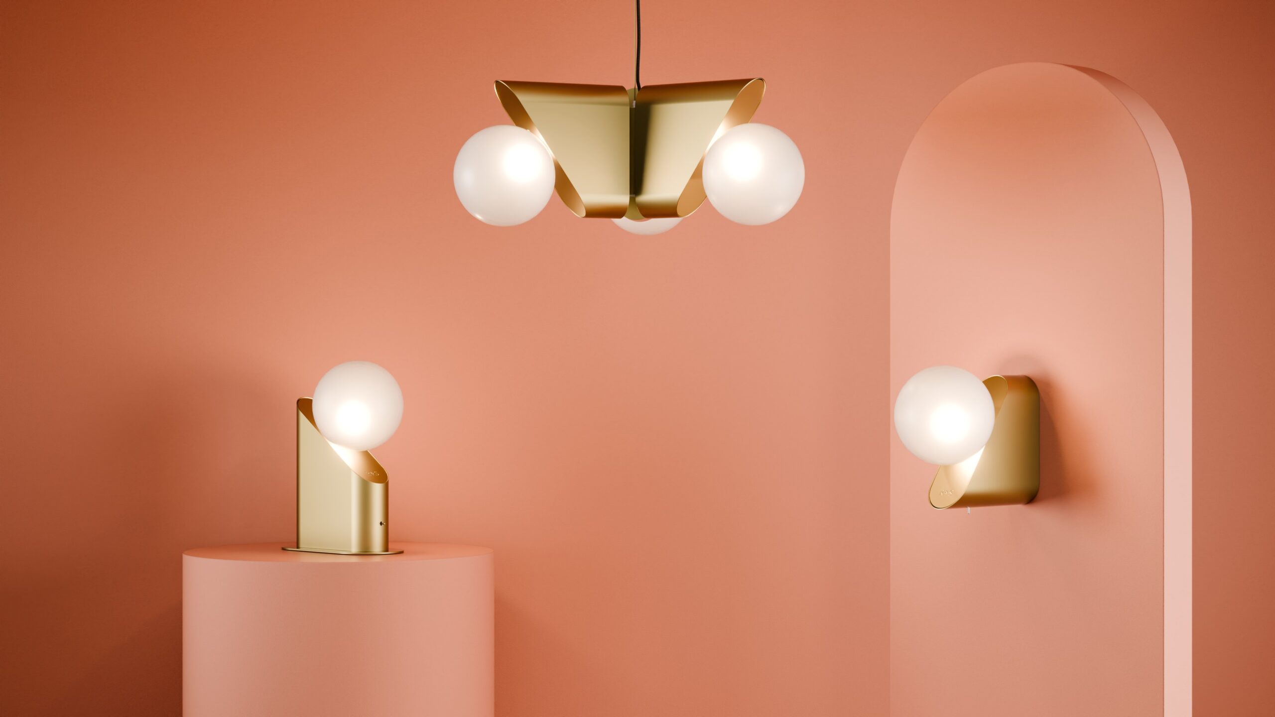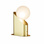 The Vienna table lamp features a slim oblong plate base, a sculpted wedge-shaped body with an integrated sleek toggle switch, and a softly glowing opal glass globe that rests gracefully on top.