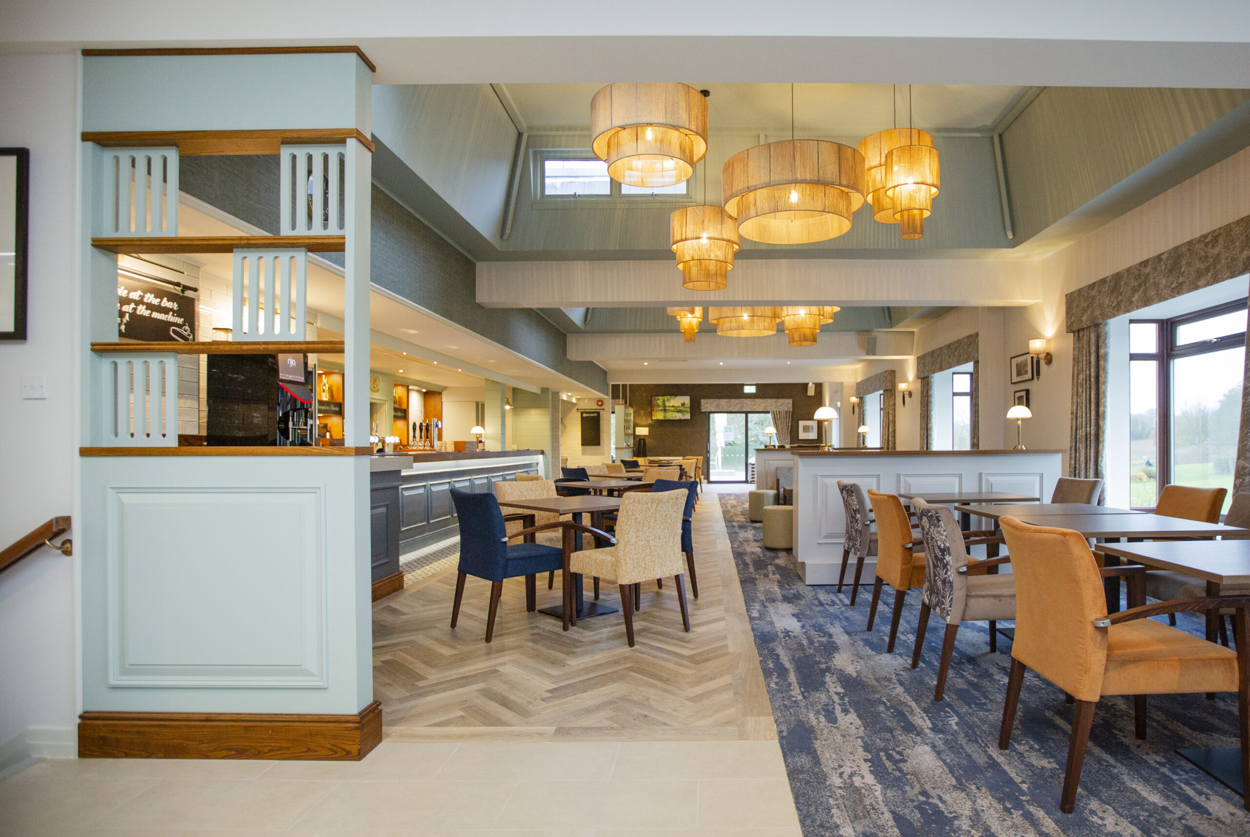 R&S Robertson worked with Hastie Studios to supply custom oversized jute rope feature pendants in a mix of two and three tiers, spanning up to a metre in diameter.