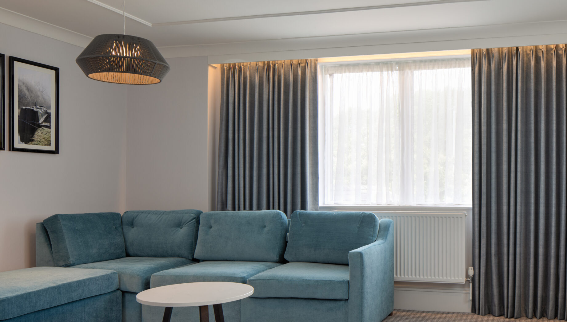 R&S Robertson supplied a contract lighting package spanning the guestrooms including black and brass floor lamps, desk lamps, bedside reading lights, bespoke cord pendant lampshades and illuminated mirrors in the en-suites.
