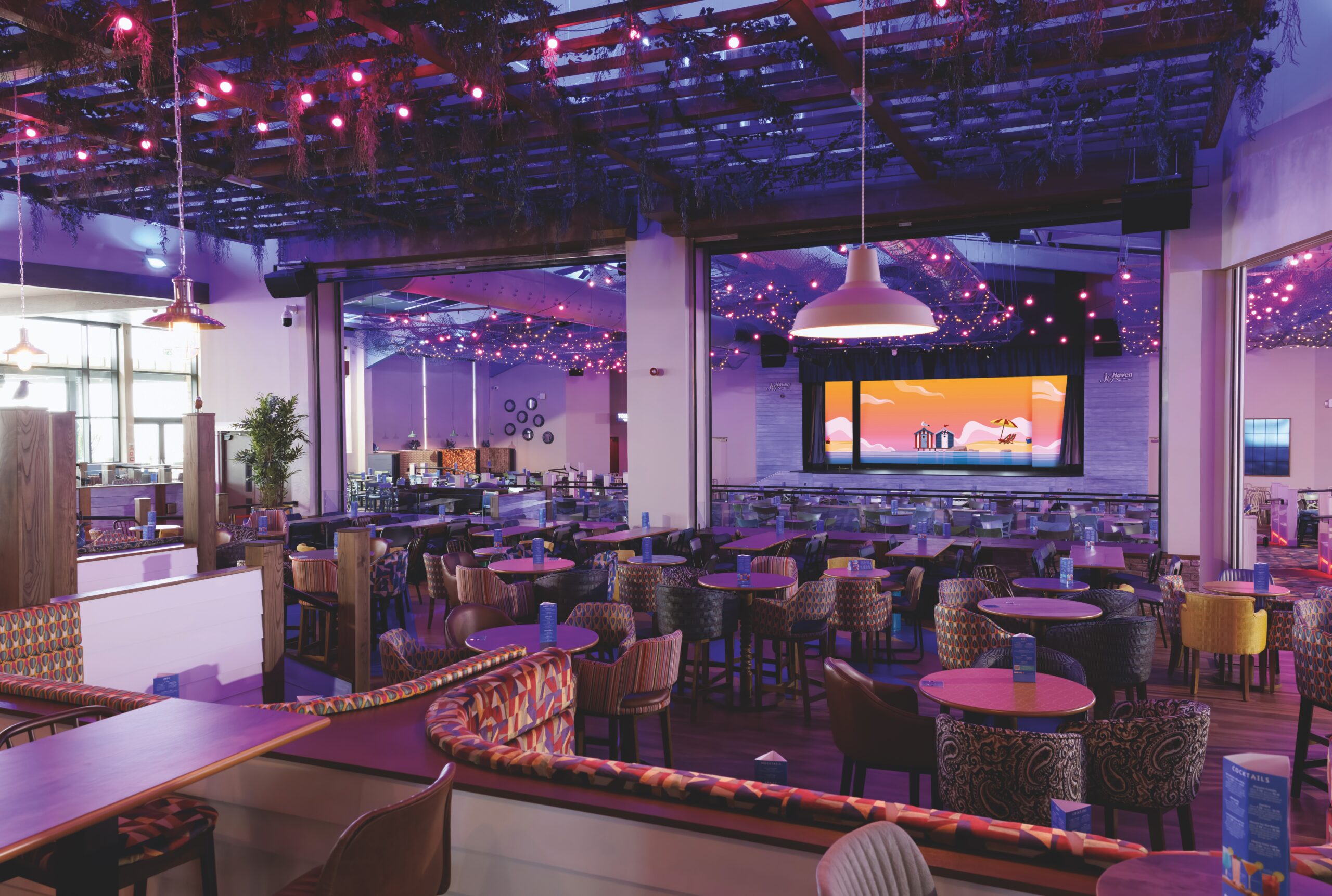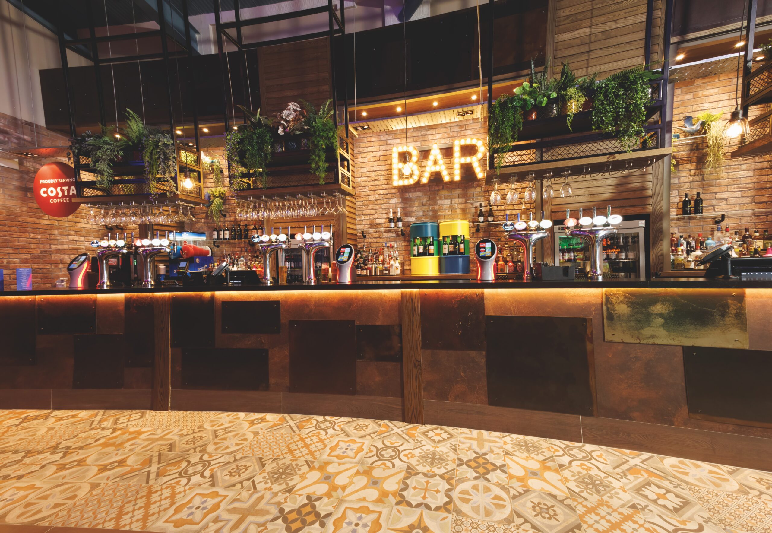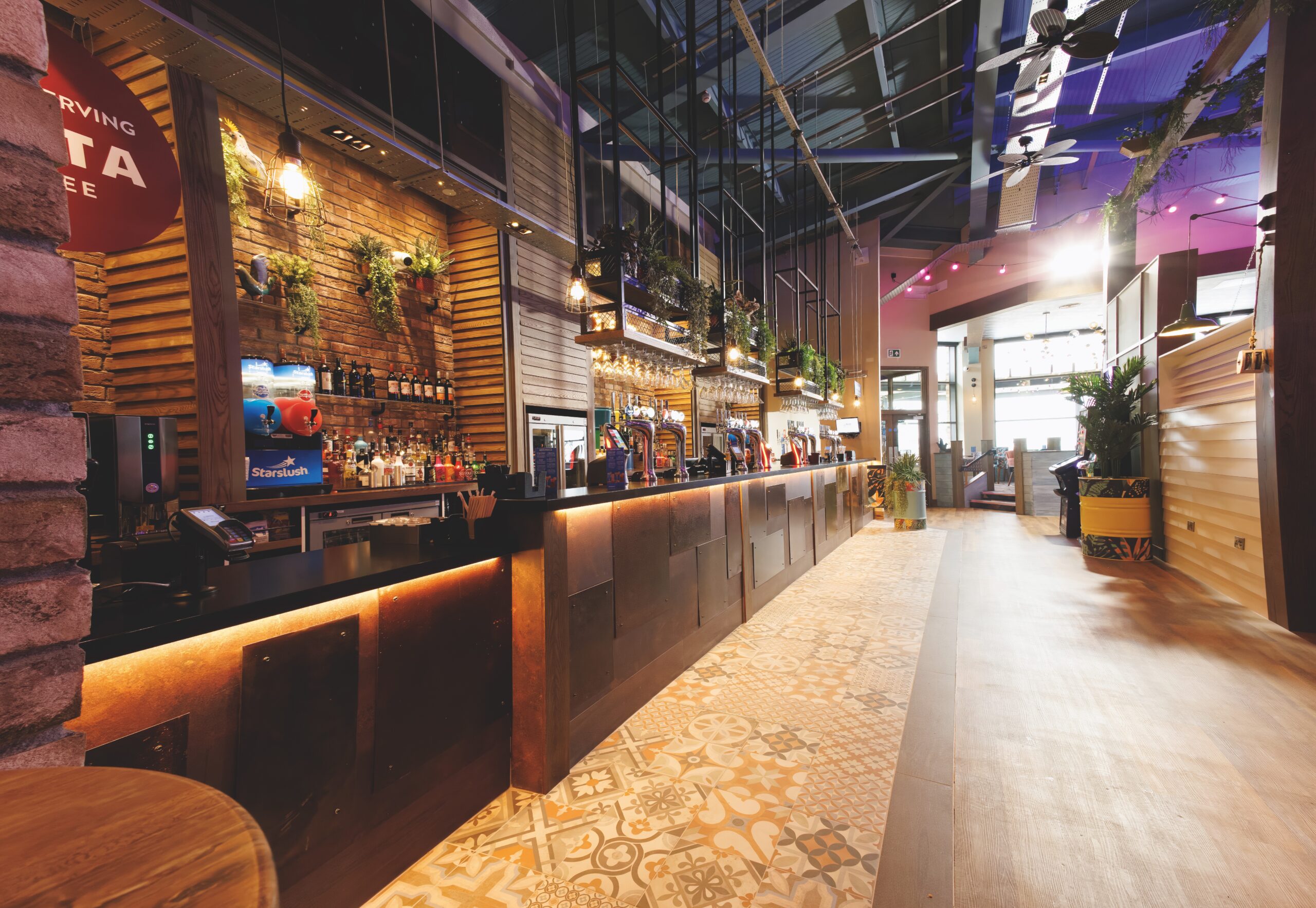 R&S Robertson worked with interior designers to supply a range of custom decorative lighting in the new Marina Bar including multi-coloured chandeliers and repurposed oil drum pendants.