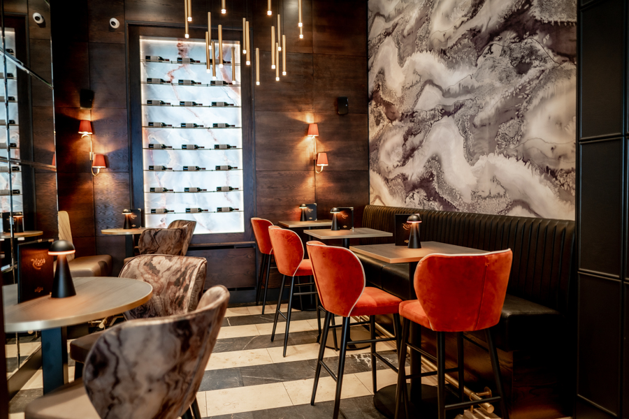 R&S Robertson worked with Interior Designer Davidson Baxter Partnership Ltd to supply a decorative lighting package, which includes a feature LED chandelier, gold pendants over the bar, and black and brass wall lights perfectly positioned for intimate ambient lighting over tables.