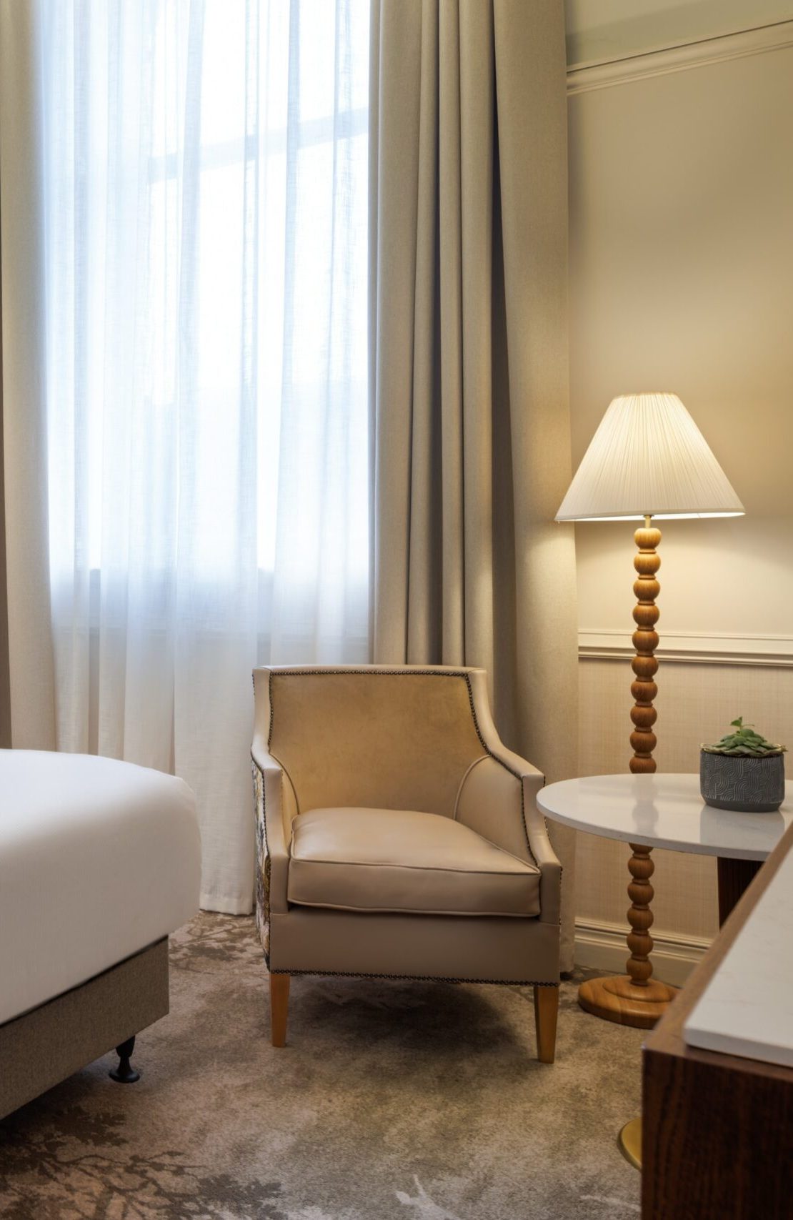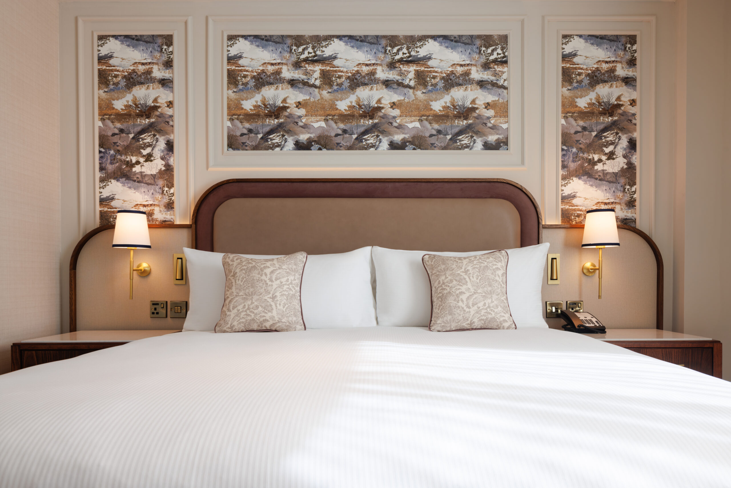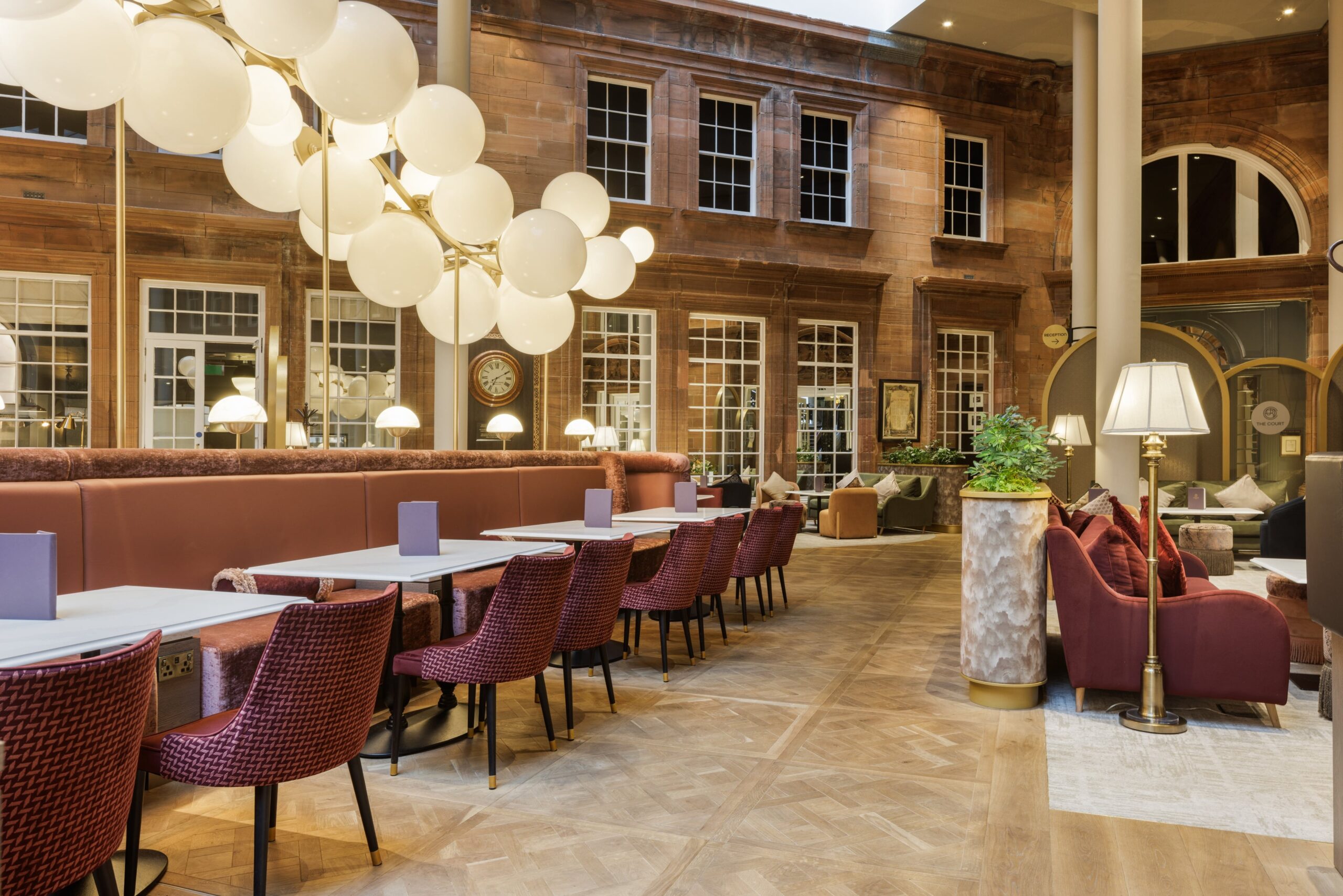 R&S Robertson worked with interior designers Cunningham McLean Ltd to supply decorative lighting spanning the King and Queen rooms including custom ceramic table lamps, torch style bedside lamps and wooden floor lamps. Bespoke wall lights and alabaster Murano glass table lamps were also supplied to The Court, a celebration of Scotland’s fresh, seasonal produce – paired with the exquisite, signature flavours of The Court Bar.