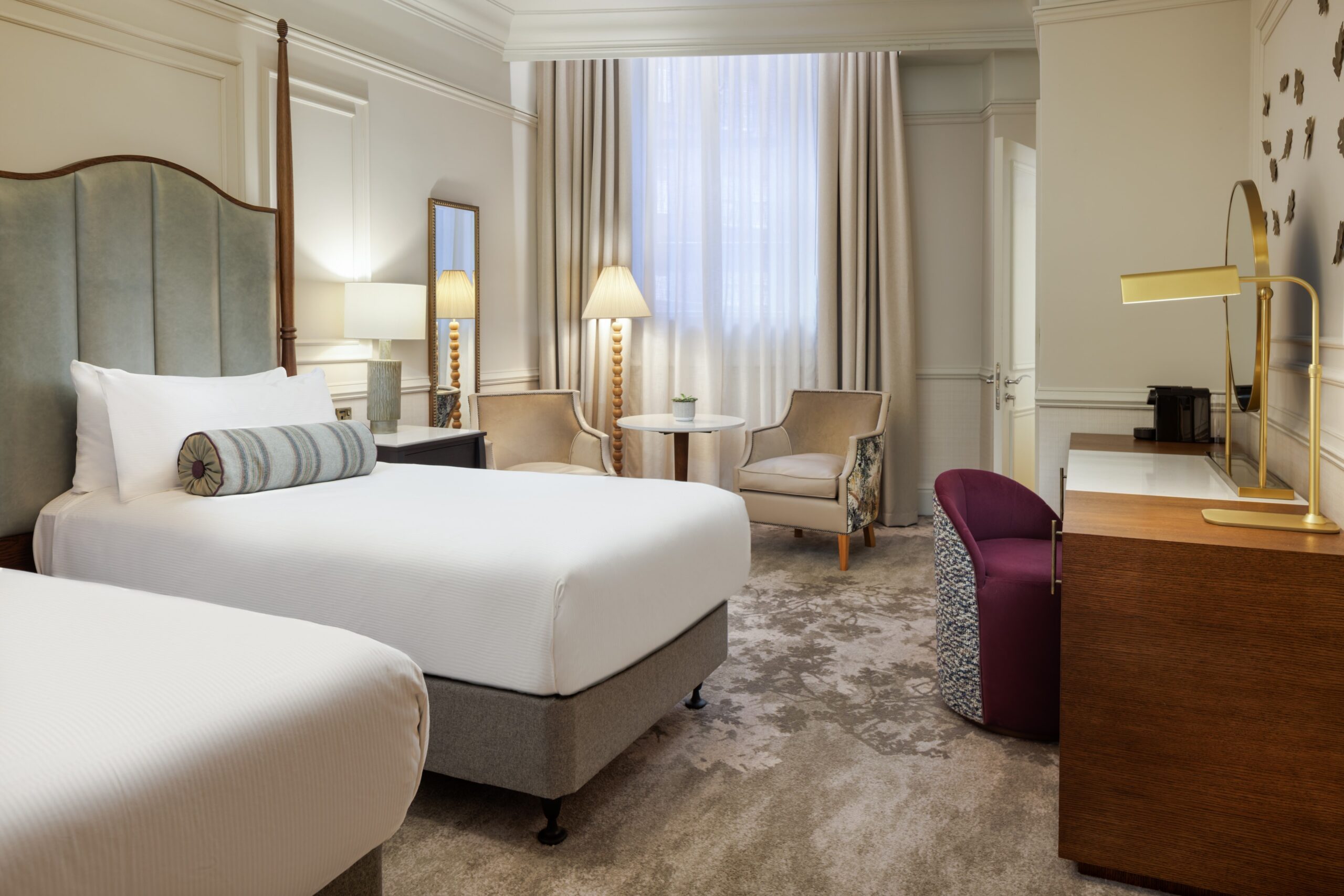 The Caledonian Edinburgh, Curio Collection by Hilton has been located in Edinburgh’s city centre for over 100 years. Originally built in 1903 as part of Edinburgh’s central railway station, the newly-reimagined rooms at the hotel have each been inspired by the coats of arms that adorn the original stained-glass Victorian windows in the grand staircase.